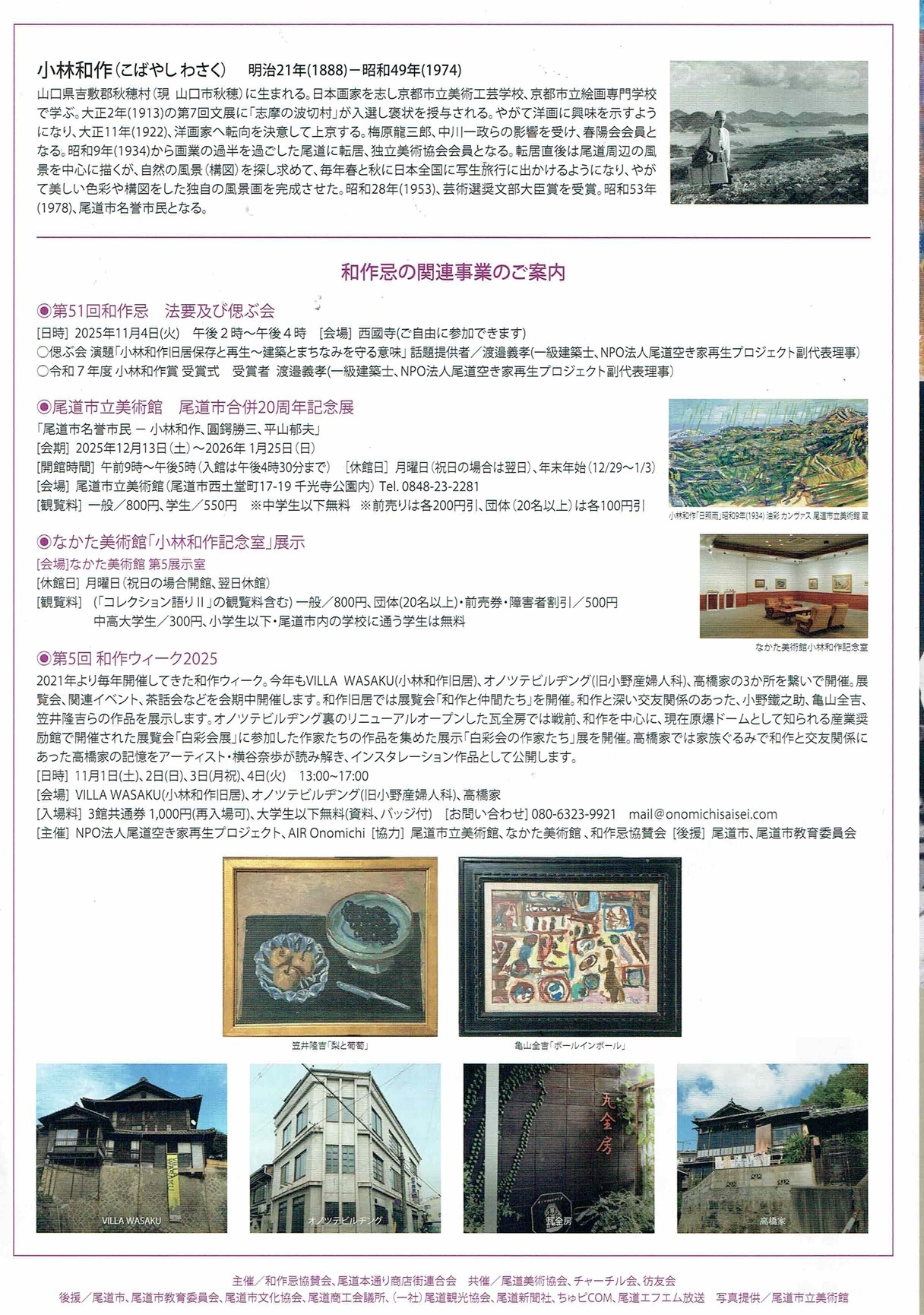 尾道市名誉市民であり、洋画家の故 小林和作の命日(11月4日)前後の10日間、彼の功績を顕彰するために行われる街頭展。