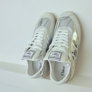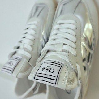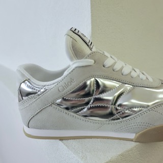 Chloe(クロエ)のスニーカー。バレエとボクシングの世界からインスピレーションを得て、スエードとメタライズドカーフスキンを組み合わせたChloe Kick スニーカーです。