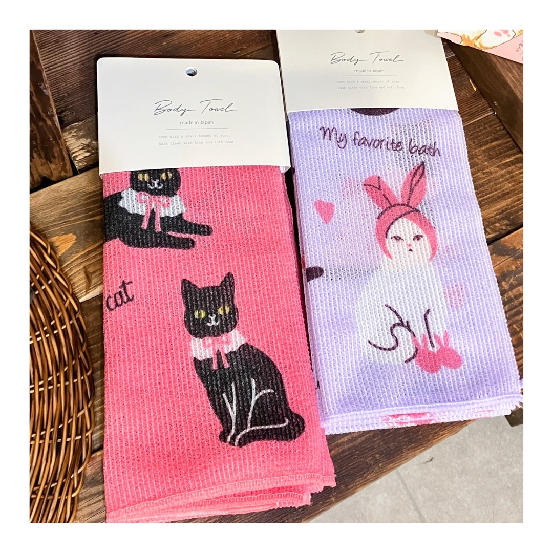 お風呂部屋におすすめ、猫モチーフのナイロンボディタオルです。