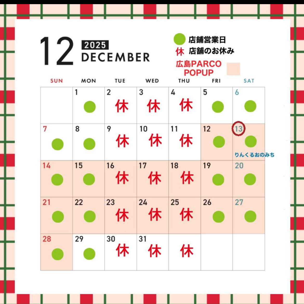 トピックス 店舗トピックス 本通りニュース 戻る 2025/11/28 更新 パピプペハウスニュース 12月営業日のご案内 12月は通常通り金曜〜月・祝日の営業で営業時間も変更なく11:00-17:00でOPEN予定です⏰よろしくお願いします🌟なお、お店の年内最終営業は12/29となります。 店舗ページへ ホーム 店舗トピックス パピプペハウス 12月営業日のご案内