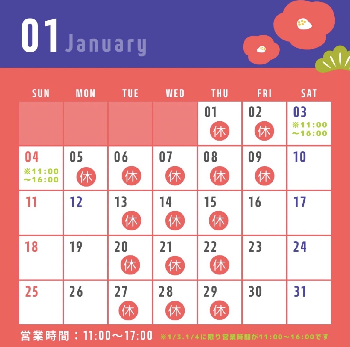 トピックス 店舗トピックス 本通りニュース 戻る 2025/12/27 更新 パピプペハウスニュース 1月営業日のご案内 新年初売りは1/3から❗(1/1、1/2はお休みさせていただきます🙇♀️)1/3、1/4 は営業時間を11:00~16:00と致します。1/5~1/9 まではお休みして、1/10より通常通り金曜~月・祝日の営業で11:00-17:00でOPEN予定です⏰よろしくお願いします✨ 店舗ページへ ホーム 店舗トピックス パピプペハウス 1月営業日のご案内