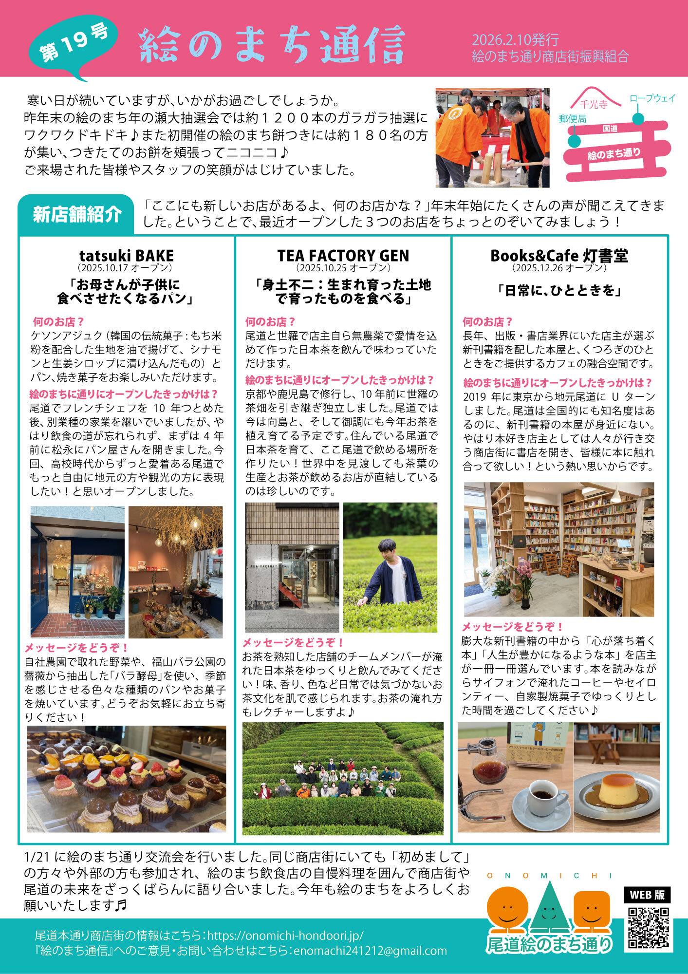 トピックス 店舗トピックス 本通りニュース 戻る 2026/02/10 更新 絵のまち通りニュース 絵のまち通信19号 絵のまち通信19号ができました。 ご一読ください。 絵のまち通信19号(PDF) 商店街のページへ ホーム 本通りニュース 絵のまち通り 絵のまち通信19号