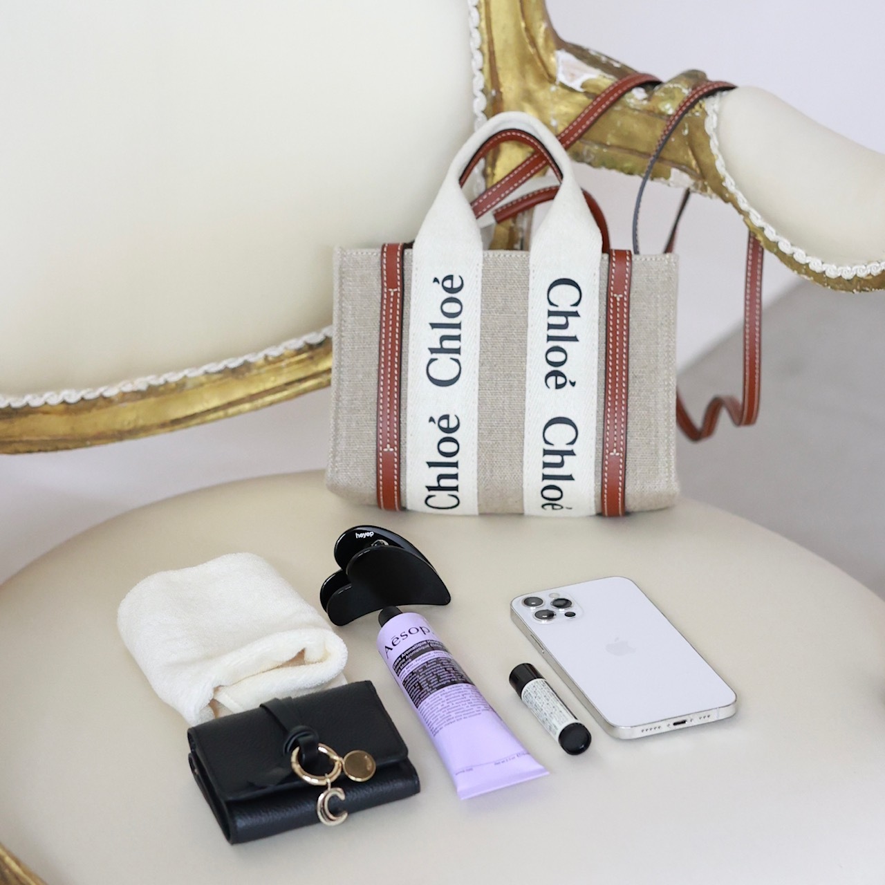 26SS NEW ARRIVAL 【Chloe(クロエ)】 リネン製WOODYミニトートバッグ