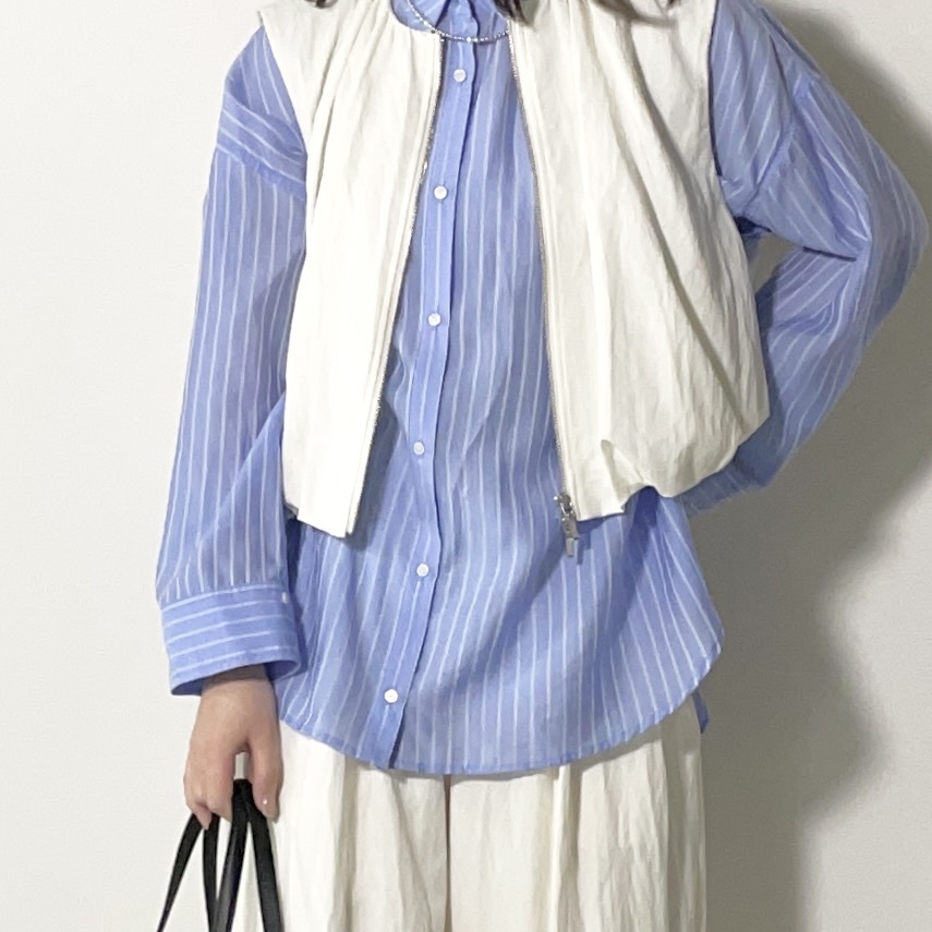 ギャザーをたっぷりと施した、立体的なバルーンシルエットが印象的なジレ。ふんわりと丸みを帯びたフォルムが、コーディネートにやわらかなニュアンスと存在感をプラスします。フロントを閉じればトップス感覚でも着用でき、レイヤードだけでなく一枚着としても活躍。比較的コンパクトなシルエットのため、インナーをすっきりとインしたスタイリングや、ワンピースとのレイヤードもおすすめです。同素材で展開しているカーヴィーパンツ(PL-PT15-26SP-PSP)とのセットアップスタイルも好相性。統一感のある着こなしで、より洗練された印象に仕上がります。