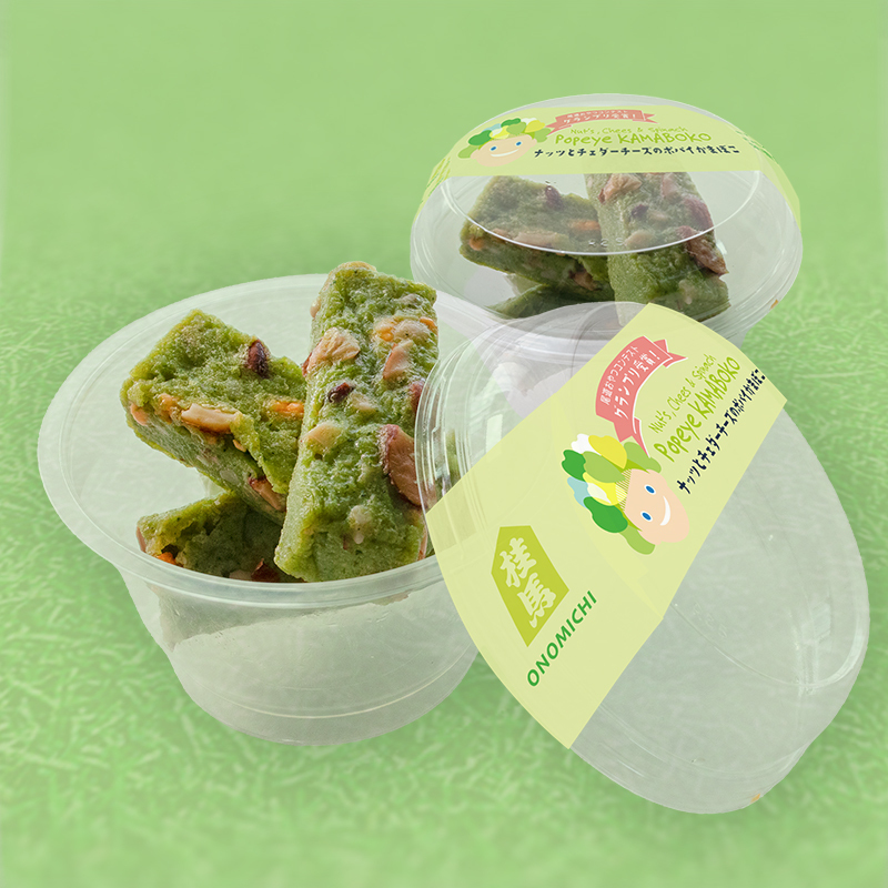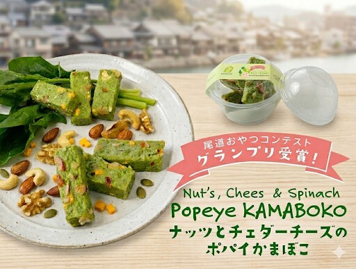 尾道おやつコンテストで、桂馬蒲鉾商店の『ナッツとチェダーチーズのポパイかまぼこ』がグランプリをいただきました。