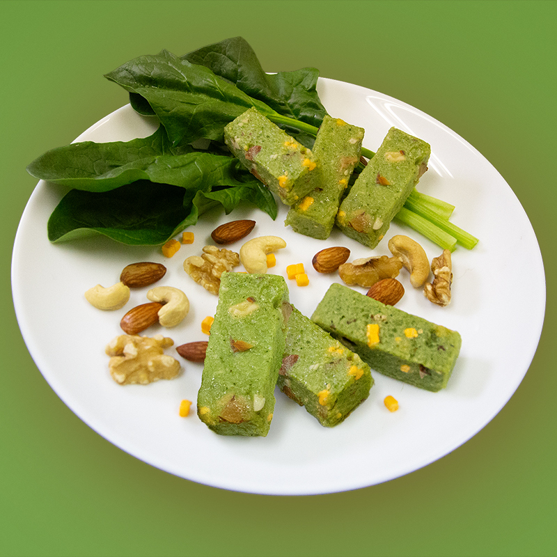 ほうれん草・ナッツ・チーズの栄養も加わり、食べるとポパイのように元気になっていただける事をイメージして作りました。